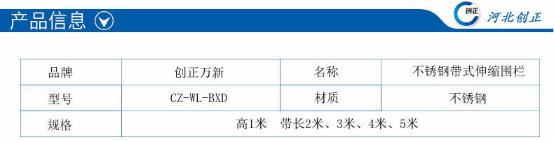 產品名稱:不銹鋼帶式伸縮圍欄